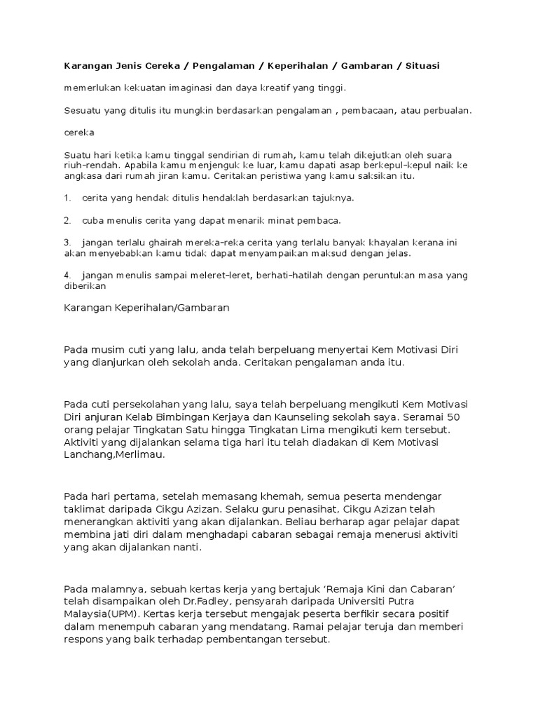 Contoh Karangan Keperihalan Pdf